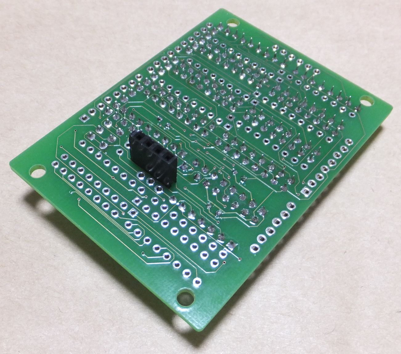 3で作成したやつです。この部品だけ、基板の裏面から取り付けて、基板の表面から半田付けします。