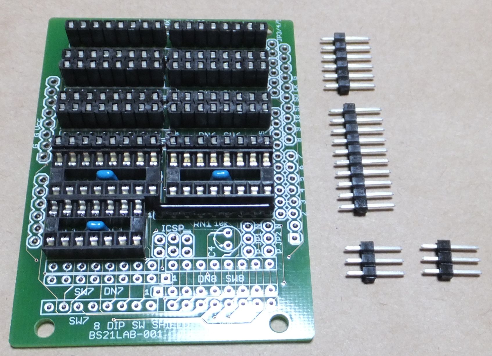 【2012年11月6日追記】8連 DIP SW 8個付属版(製品番号:BS21LAB-001S)も御用意しました。8連 DIP SW 8個が付属している以外は、仕様等、まったくの同一製品になります。